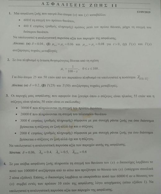 Αναλογιστικά Μοντέλα Συμβάντων Ζωής ΙΙ